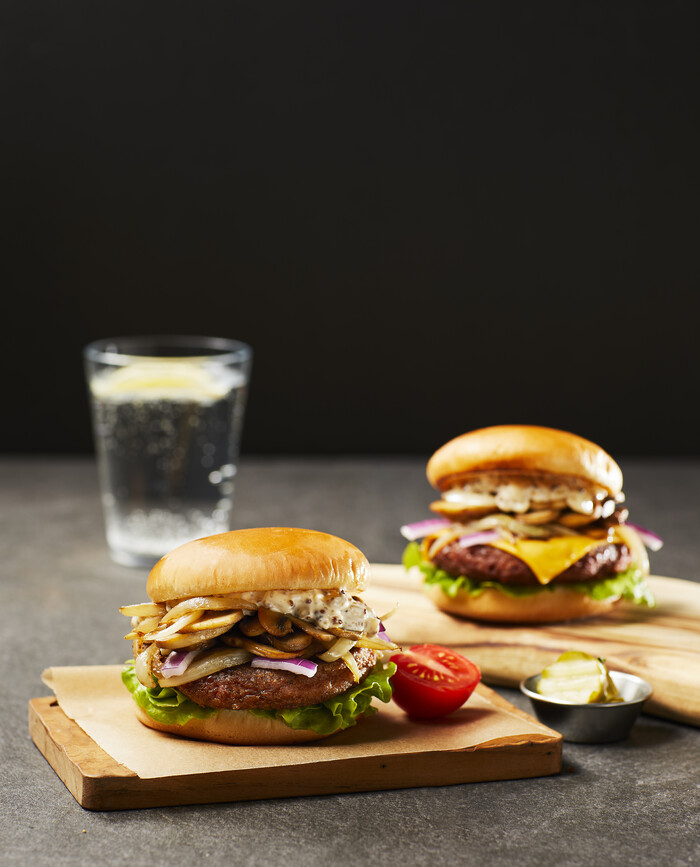 | ▲ 동원F&B가 비욘드미트와의 협업으로 만든 100% 식물성 대체육 버거. 실제 육류패티를 사용한 일반 버거와 비교했을때 모양과 맛, 향 모두 흡사하다. (제공=동원F&B) |