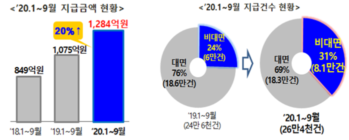 특히 코로나19 확산 억제를 위한 ‘사회적 거리두기’ 상황에서 비대면 채널을 이용한 휴면예금 지급 건수는 8만1000건으로, 전년 동기 대비 약 36% 증가했다.
