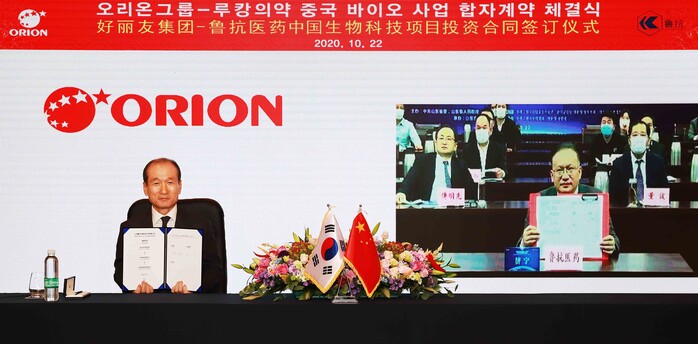 오리온홀딩스는 중국 국영 제약기업 ‘산둥루캉의약(이하 루캉)’과 바이오 사업 진출을 위한 합자계약을 체결했다고 23일 밝혔다.