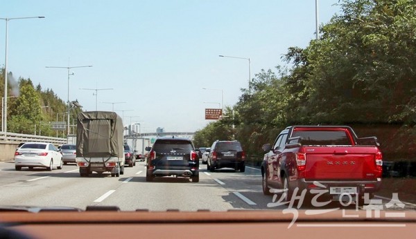 앞선 차량이 갑자기 속도를 줄이자, 토레스는 요란하게 경보음을 울린다. 전방 추돌 경고(FCW) 기능이다. 앞차를 추월하기 위해 차선을 이탈하자 토레스가 역시 경보음을 통해 차선이탈을 알려준다.