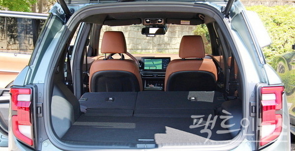 여기에 최근 야외 활동이 많은 운전자를 위해 기본 대용량 트렁크에 2열을 접이 기능을 적용했다. 이 경우 839ℓ의 트렁크가 1662ℓ로 늘어난다. 삼각대와 쟤 키 등이 실린 스페어타이어 함을 적재 공간으로 이용할 경우 토레스의 적재함은 최고 1700ℓ 이상이다.