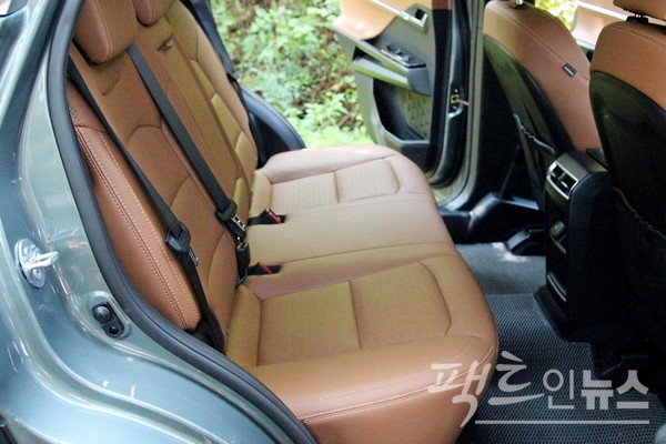 최근 최고급 세단에 많이 실리는 갈색 계통의 가죽 시트는 착좌감이 우수하고, 실내 곳곳에 크롬 빛깔의 진공증착한 재질을 대거 적용해 내부에 고급스러움을 살리고 있다. 차량 문 가운데를 굵은 크롬 재질을 두른 점이 이채롭다.