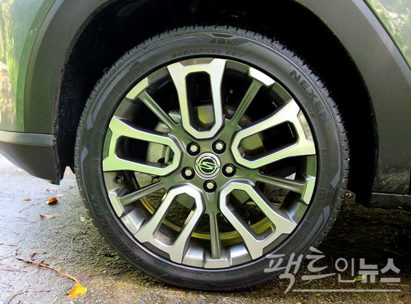 여기에 폭 245㎜, 편평비 45%의 스포츠 타이어가 20인치 휠과 함께 토레스의 산뜻한 주행성능을 뒷받침한다. 이 타이어의 중량과 속도기호 99V다. 토레스가 최고 775㎏의 짐을 싣고, 최고 시속 240㎞로 달릴 수 있다는 뜻이다.