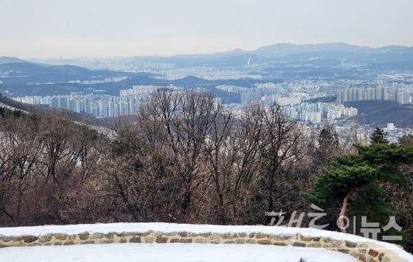 남한산성 옹성에서 바라본 성남시 구도심과 분당, 송파구 일대. [영상=정수남 기자]