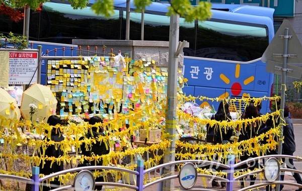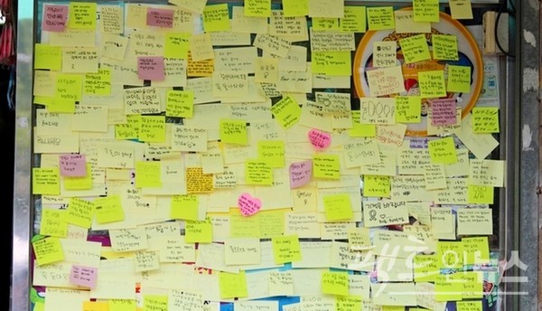 당시 안산 도심 곳곳에는 오열하는 시민이 대부분이었고, 세월호 희생자를 기리는 메모 역시 많았다. [사진=정수남 기자]