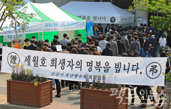 세월호가 침몰한 다음 날 케메라 앵글을 안산 등에 맞췃다.
