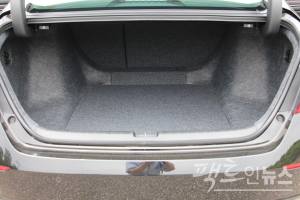 후면에서는 트렁크 도어 중간을 기점으로 갈라진 후미등이 이채롭다. 여기에 배기구를 감싼 범퍼 양끝을 크롬재질의 마감재로 처리해 세련미를 살렸다.