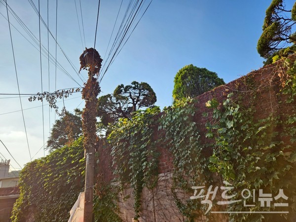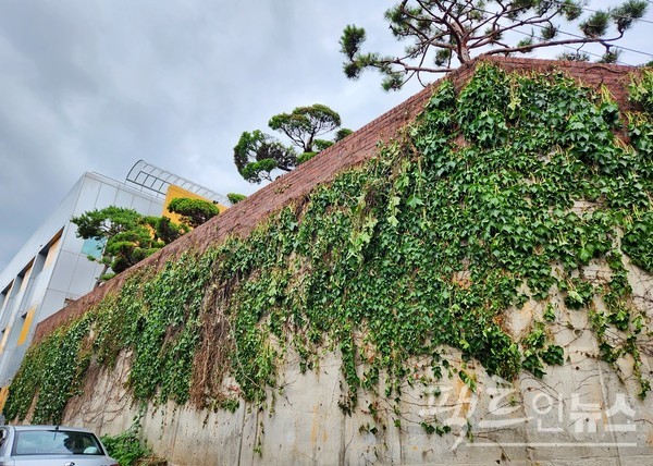 녹음의 계절에 갈색 잎이 뒤덮은 담이 더 지저분하다. 장애인의 재활을 돕는 재활원이 이럴진대, 하물며 보통 사람은?