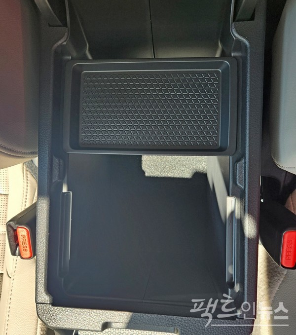 스마트키를 통해 운전석에 앉았다. 일별한 1열은 흑과 백의 조합에, 군데군데 크롬 빛깔이 나는 진공증착한 재질, 검정 강화플라스틱을 골고루 섞어 외관과 조화를 이뤘다. 실내가 고급스럽다는 뜻이다, 여기에 옅은 회색 시트와 대비도 실내 디자인의 묘미다.