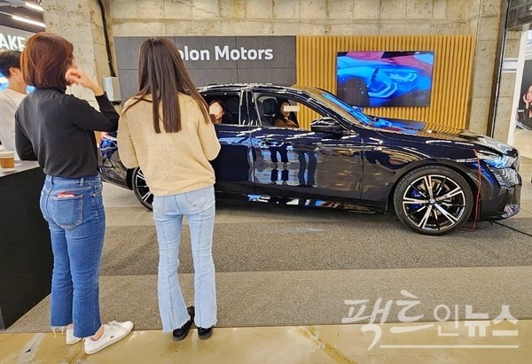 코오롱모터스는 이번 주부터 유동 인구가 많은 현지 복합상영관 입구에 더 5를 선보이고 있다.