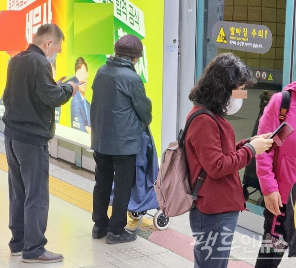 다만, 많은 사람이 스마트 전화기를 보느라 뒤 따르는 사람이 승차를 못하 건, 하차를 못하 건, 무관심이다.