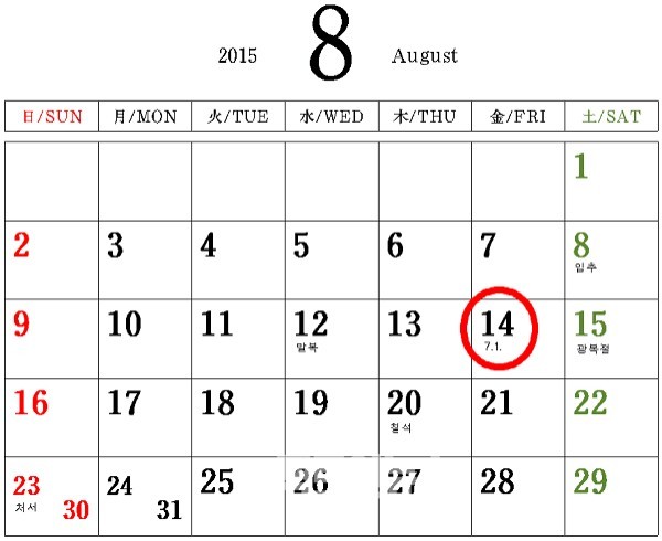 이는 올해 광복절(8월 15일)이 토요일로 휴일임에 따라 14일을 임시 공휴일로 지정하는 것으로 ▲광복 70주년의 역사적 의미 상기 ▲중동호흡기증후군(MERS·메르스) 사태 등으로 위축된 국민사기 진작 ▲국내·외 경기 위축에 따른 내수활성화 등을 고려한 것이며 행정자치부가 인사혁신처에 요청하고 차관 회의 및 국무회의를 거쳐 대통령 재가 절차를 밟아 시행하게 된다.