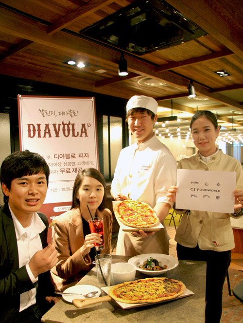 오는 25일부터 27일까지 ‘CJ푸드월드’ 제일제당센터점에서 ‘디아블로’ 피자 반 판(6조각)을 먹는데 성공하면 해당 피자 한 판을 무료로 즐길 수 있다. 테이블 당 1명씩 도전 가능하며 도전 영상을 핸드폰으로 촬영 후 직원에게 확인 받으면 된다.