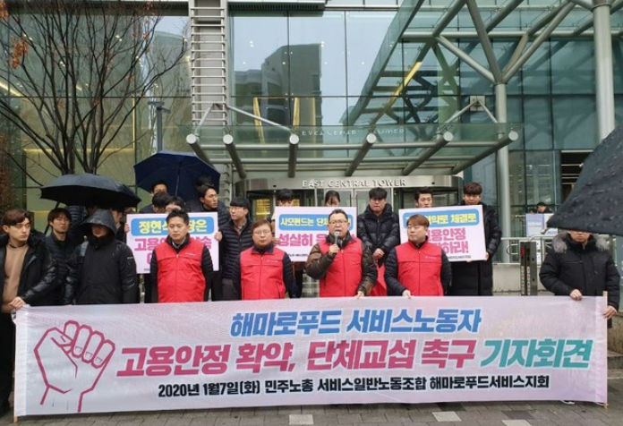 해마로푸드서비스 노조는 “그간 노동조합은 교섭대표노조로서 단체교섭권을 확보해 12월 30일에 이어 7일인 오늘까지 교섭을 요구했으나 조합원 자격을 언급하며 지속적으로 거부하고 있다”고 지적했다.