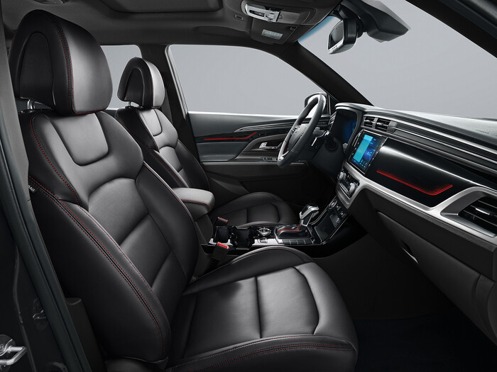 실내는 △시트&스티어링휠 △센터암레스트 △카매트 등에 레드스티치(stich)를 적용했다. 특히 레드 천공가죽이 감싼 부츠타입 변속레버가 강렬한 스포티함을 대변한다. 헤드라이닝과 센터콘솔, 도어암레스트. 조작버튼에 적용된 블랙컬러는 강렬한 인상을 준다.
