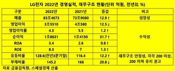 LG전자의 재무구조도 탄탄하다.